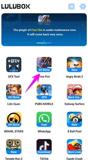 Download LuLuBox, cài vào điện thoại của bạn. Chọn Free Fire để tiến hành Unlock tài khoản.